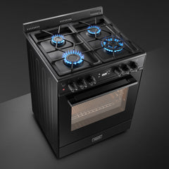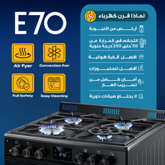 بوتجاز غاز ٧٠ مزود بفرن كهربائي حديث مع أمان كامل وشعلات إيطالية، بالإضافة إلى مروحة للفرن. يحتوي أيضًا على خاصية اير فراير وتايمر ديجيتال لتجربة طبخ سريعة وصحية في المطابخ العصرية.
