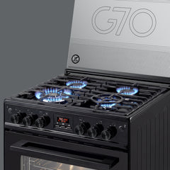 G70 Gas Cooker Black with Italian SABAF Burners & Full Safety